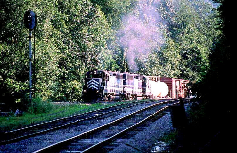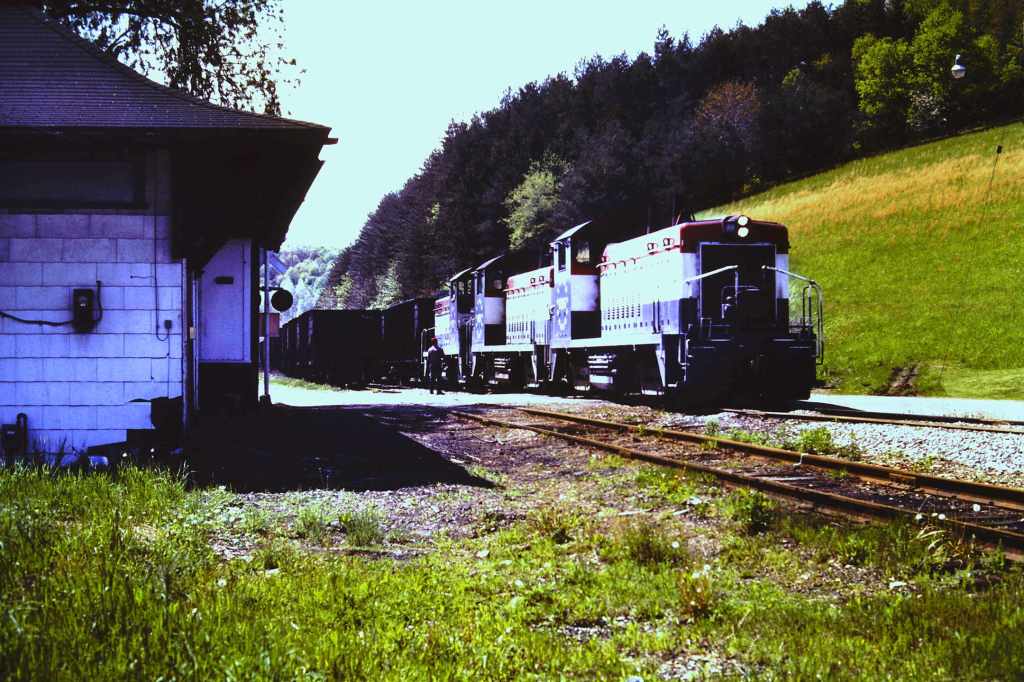 At Brookville a five pack of power heads south including a boxcar going to Plunkett & Webster for treated lumber. Since it’s summer and warmer weather here’s one to cool you down from my collection. In 1984 caboose 197 was bringing up the rear of this one in the McWilliams area.Remember in the early 1970’s when the P&S leased some units, that included the 233 to Lehigh Valley.One of the site’s earliest photos from my collection, the 235 had its paint freshened and the “Railroad” was left off.Thought it would be fun and interesting to go back to the earliest days of the P&S web site, the days on Windows 95 and dial up internet. Here’s the 1776 with no railroad markings of name! Of course the 1776 was originally the 239 and took on the SHAMWUT LINE name and named Betsy Ross. When David Baer visited Brookville yard in 1996 it looked like Brookville, but you’d never know it was once the Pittsburg & Shawmut Railroad.Shawmut and Mountain Laurel power roll over the viaduct in Reidsburg. Randy Kiser was on hand to catch a Teddy Bear hitching a ride on KGL1 in the Kittanning area on caboose 196.Albany & Eastern’s 1866 is looking mighty fine, it was former P&S 232 & 1866 & named Oliver WInchester.Sam Kanish sent us this peek at the throttle of one of the SW9’s,I think this was P&S 233.And the 233 was at Kittanning this day and quite new! John Hartman caught this northbound rounding the bend along Mahoning Creek.A northbound steams through Timblin long ago. Timblin is right at milepost 44 dead center of the P&S!EPSON scanner image