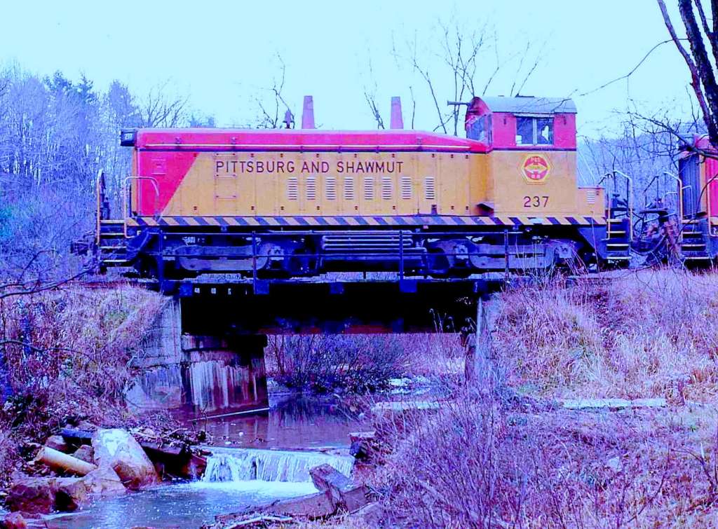 Here’s some basic HIstory Of The P&S R.R. In the late part of the 1800’s several small western NY and PA railroads merged becoming the Pittsburg, Shawmut, and Northern Railroad which ran from Wayland, NY to Brockway, PA. During the time the P.S.&N. began Pittsburgh, PA was spelled without the “h”, so both railroads used that spelling.