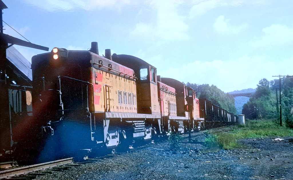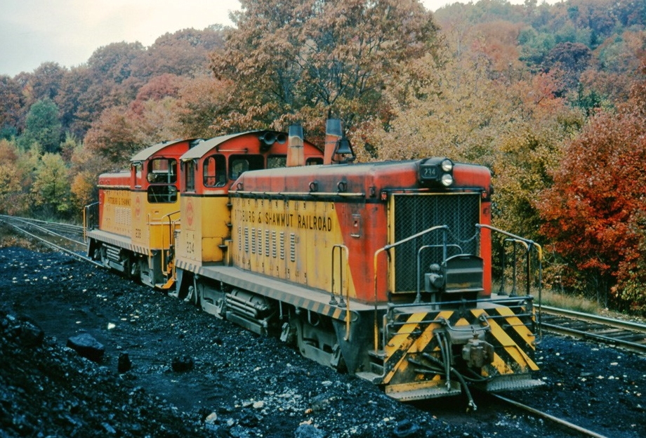 The red and yellow switchers blended right in with the vibrant fall colors in the Knoxdale area!In March 1992 David Baer caught Mountain Laurel 2 on the Coder Viaduct with P&S 1949, 1774, & 1976.Timblin from Windy Whiz in 1915!Let’s take a look at Pine Furnace from Mike Zollitsch from 2007.Since we recently featured the coal loader at Dora, now lets look at the Ringgold loader from earlier years. Since the P&S was a coal hauling line, let David Baer take you back to October 1995 where BVL1 was working the coal loader at Dora!! John caught three P&S SW9’s at MP1 Lawsonham. Sprankle Viaduct 1994Northbound at Freeport 1993Dora Coal Processing Plant with five Mountain Laurel GP10’sWest Penn Power Plant Reesedale 1994In 1984 a northbound local works the coal loader at Timblin in this John Murray photo. Andy Hepp sent this view of Brookville in 2008, looks more like a Conrail yard! The 3013 isn’t going anywhere soon! I always liked this shot of the 237 at Markle from Kurt Reisweber since grandpa and I walked over this spot many times and the 237 is a bit odd with the word “AND” instead of the &. Here’s GP7 357 tied up at Applewold/Kittanning from Bob Schroyer in 1977. The 357 was a bit odd, had to either lead long hood forward or trail with the short hood to other power as the long hood didn’t have the proper cables.A great photo at West Mosgrove of a BPRR chugging along from Freddy Shook. The two tracks in the foreground where the P&S tracks at this interchange point and obviously at the top of quite a steep climb! Plenty of power on this one switching at “BV” including GP7 357! A nice look at the old and the new at Brookville! In the special section P&S engines in original and Bicentennial paint it was noted the 236 had the word “and” instead of the “&” between Pittsburg & Shawmut, found this rare look in my collectionof the 236 at “BV.”In August 1989, David Baer caught eastbound Conrail coal train UCI-275 crossing the Carrier Viaduct on Conrail’s Clarion Secondary, a former New York Central line. The coal train loaded at the mine at Piney. Conrail’s Clarion Secondary would become the Mountain Laurel’s Piney Line, when Conrail sold the line to the P&S. The Viaduct is just east of the Conrail and LEF&C interchange at Sutton, Pa. In March 1992, David caught this eastbound Mountain Laurel train also on the Carrier Viaduct powered by three P&S switchers. The ML train had picked up a train of empty LEF&C hoppers from the LEF&C interchange at Sutton and is heading toward Brookville. Note the SP box car behind the P&S switchers. It is loaded with bricks from an industry on the LEF&C.